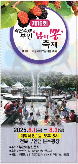 부안군 농업기술센터(소장 정혜란)는 부안의 특산품인 오디의 우수성을 널리 홍보하여 농가 소득 증대에 기여하고자 제16회 부안 님의 뽕 축제를 오는 8월1일 부터 3일까지 3일간 부안댐 분수광장에서 개최한다.부안서림신문사가 주최하고 부안군과 K워터 부안권지사가 후원하는 이번 축제는 부안을 찾은 관광객들에게 부안에서 생산되는 뽕 관련 제품의 전시·판매는 물론 각종 체험 프로그램을 운영해 보고 즐기는 축제로 뽕과 누에를 중심으로 한 부안 농산물을 전시·판매할 예정이다.오디주스 빨리 마시기 대회, 오디 나르기 릴레이, 얼음 속 뽕주 찾기,