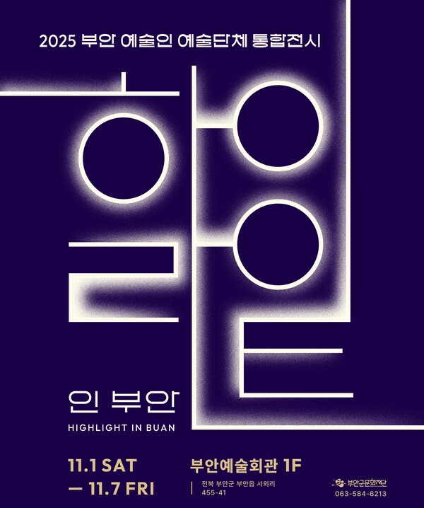 부안군문화재단(이사장 권익현, 이하 재단)은 오는 11월 1일부터 7일까지 부안예술회관 1층에서 2025 부안 예술인·예술단체 통합전시, 하이라이트 인 부안을 개최한다.