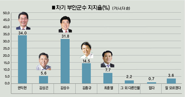 지방선거가 150일 앞으로 다가온 가운데 권익현 현 부안군수 후보 지지율이 김성수 전의장 후보를 앞선다는 여론조사 결과가 나왔다.